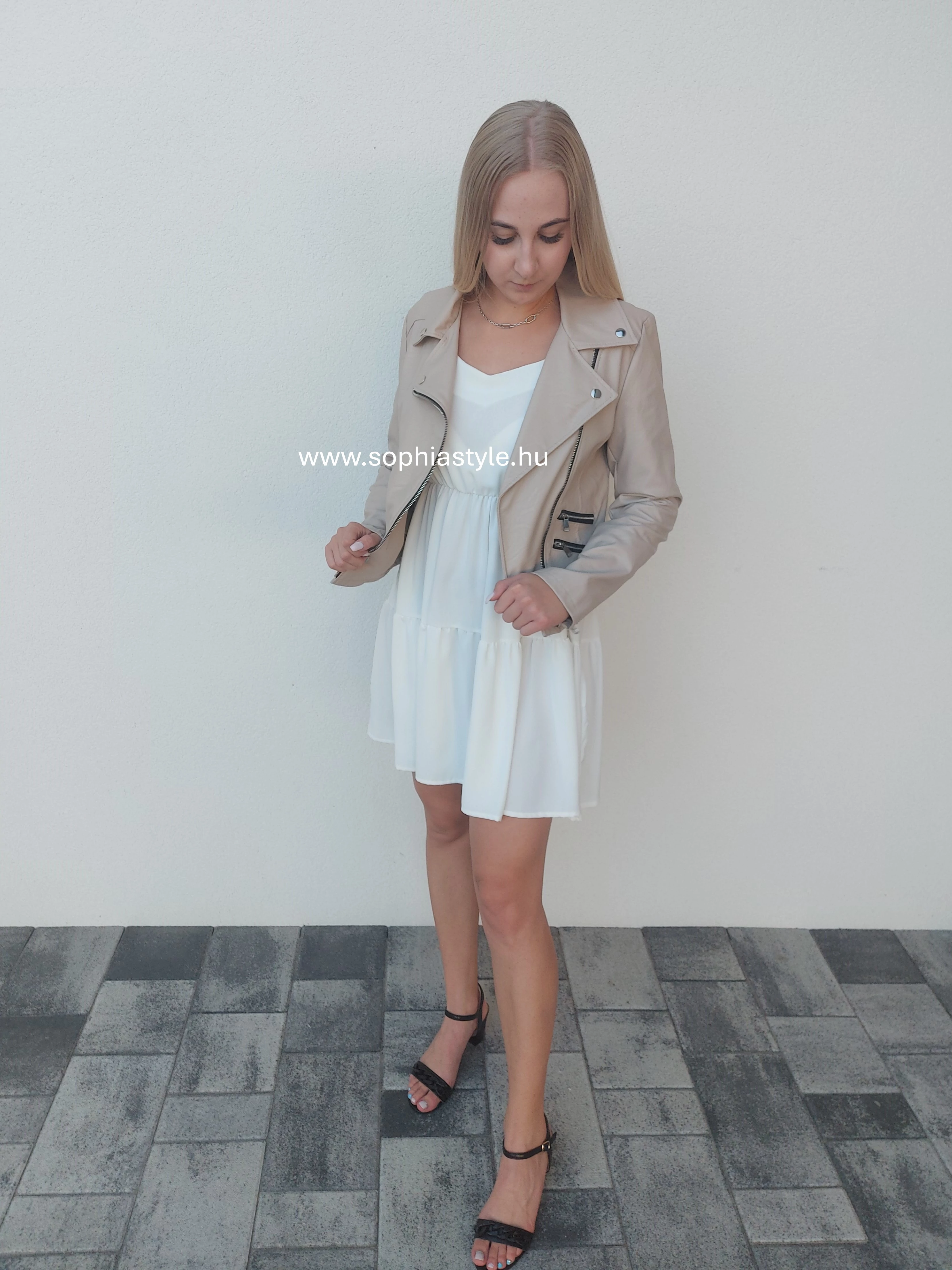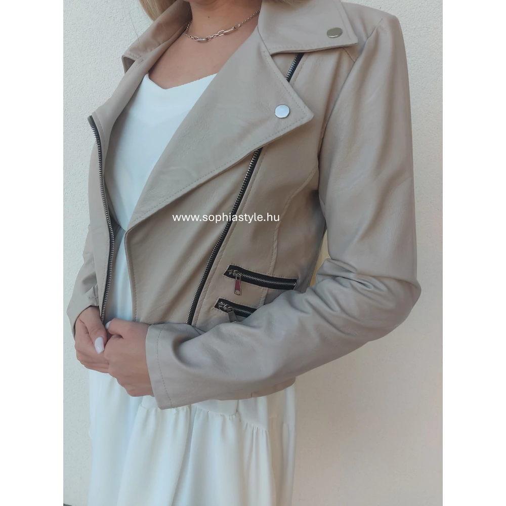 Sophia Style Női webáruház,Női kabát, Őszi/tavaszi kabát, Kabát rendelés, Bőrhatású kabát, Bézs kabát