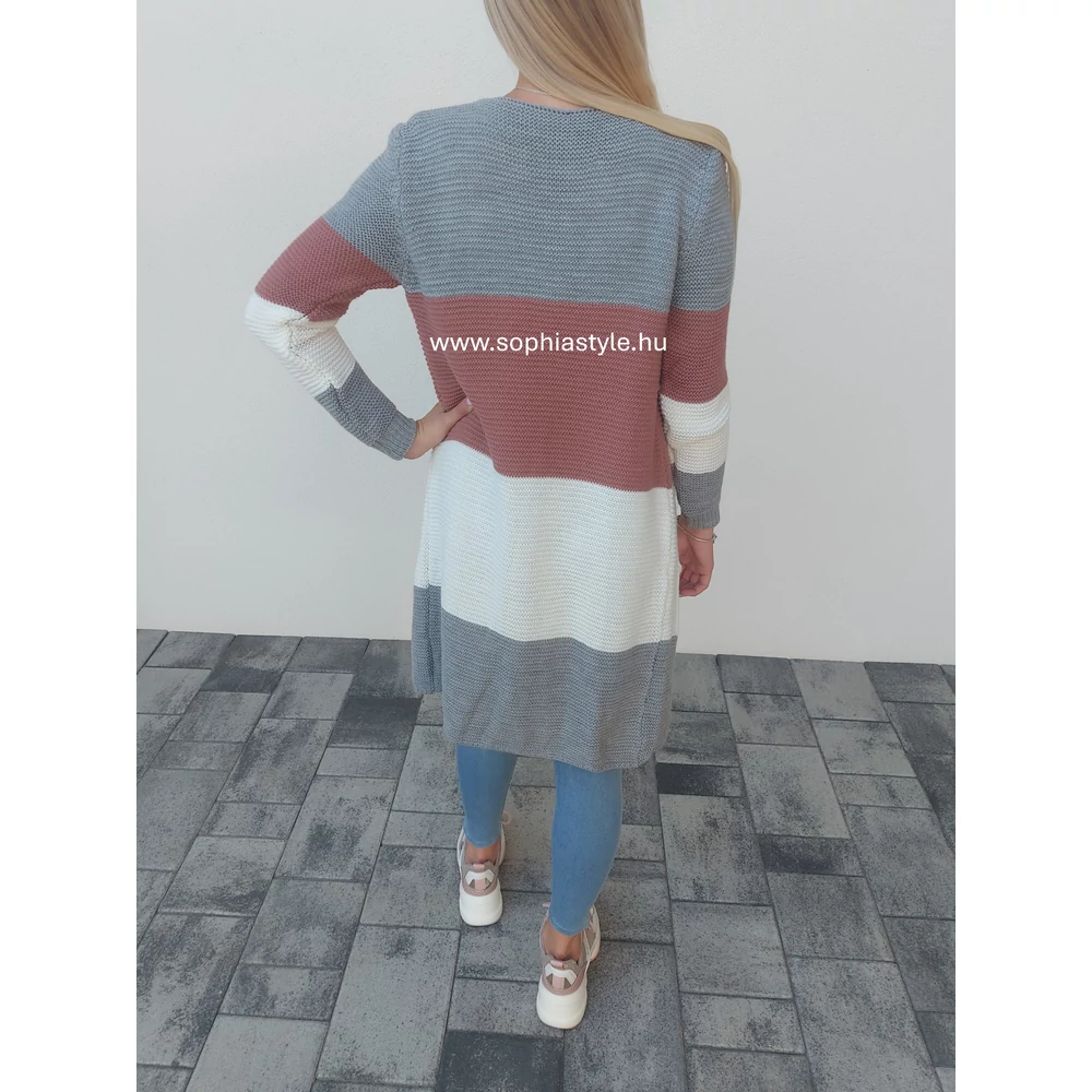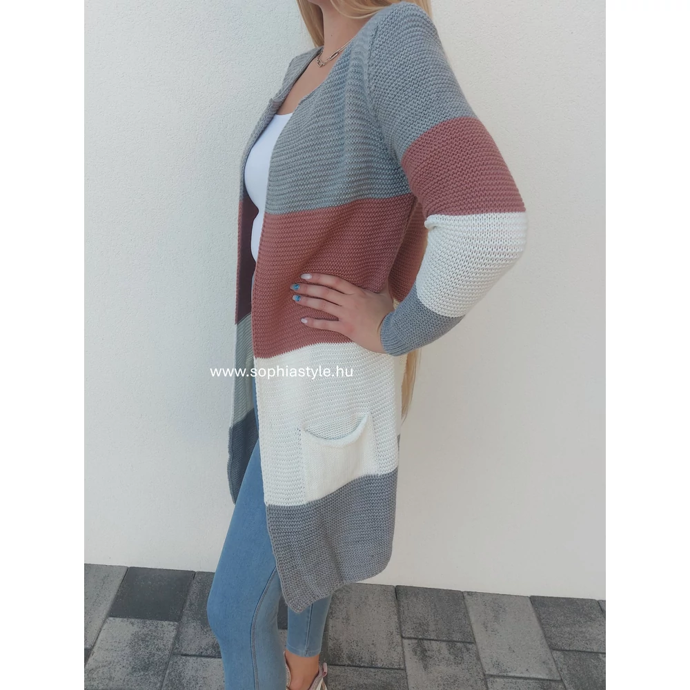Kötött kardigán - Szürke/Sötét rózsaszín/Fehér